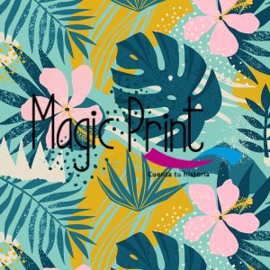 Tropical hoja y flores multicolor, estilo pop art