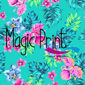 Tropical flores y hojas multicolor, con fondo interactivo