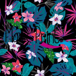Tropical flores de tonos oscuros, fondo negro